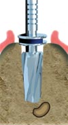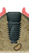 L'implantologiste va, à l 'aide de forets de diamètre adpaté, préparer la place dans l'os. L'implant pénétre dans l'os en forçant légèrement. Il est ainsi stabilisé. Après la pose de l'implant va avoir lieu la phase d'ostéo-intégration. En effet l'implant, contrairement à la dent, est totalement fixe, c'est-à-dire ankylosé dans l'os. La mise en charge de l'implant est généralement différée pour permettre la phase d'ostéo-intégration (de plusieurs semaines à plusieurs mois). Par la suite, une couronne sera mise sur cet implant qui se comportera comme une racine artificielle.